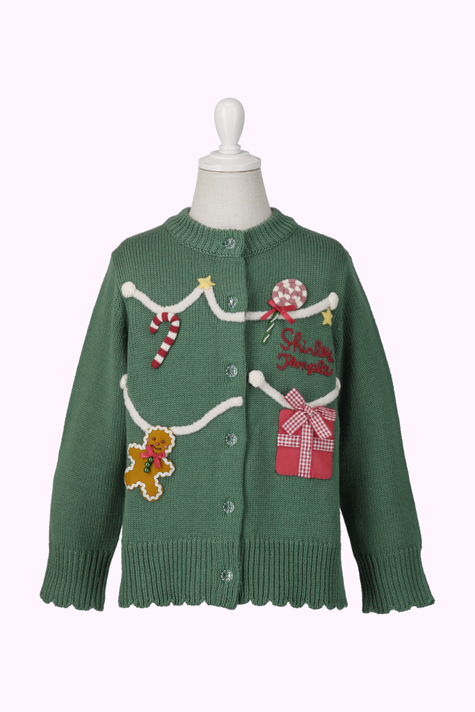 前側のクリスマスツリーのオーナメント風のモチーフは