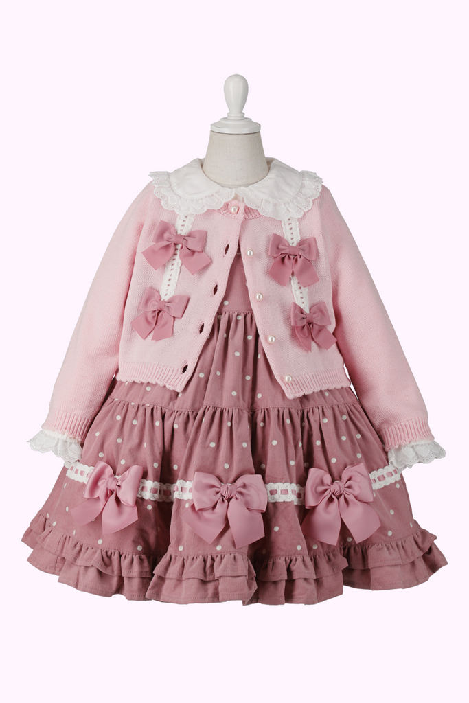 はしごレースに大きなリボン、裾にはフリルを2重にあしらい