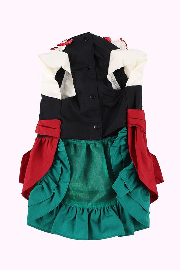 | 素材 | スカート表側:ポリエステル65% 綿35% スカート裏側:ポリエステル100% 身頃・スカート裾フリル:ポリエステル65% 綿35% 身頃フリル:ポリエステル100% |