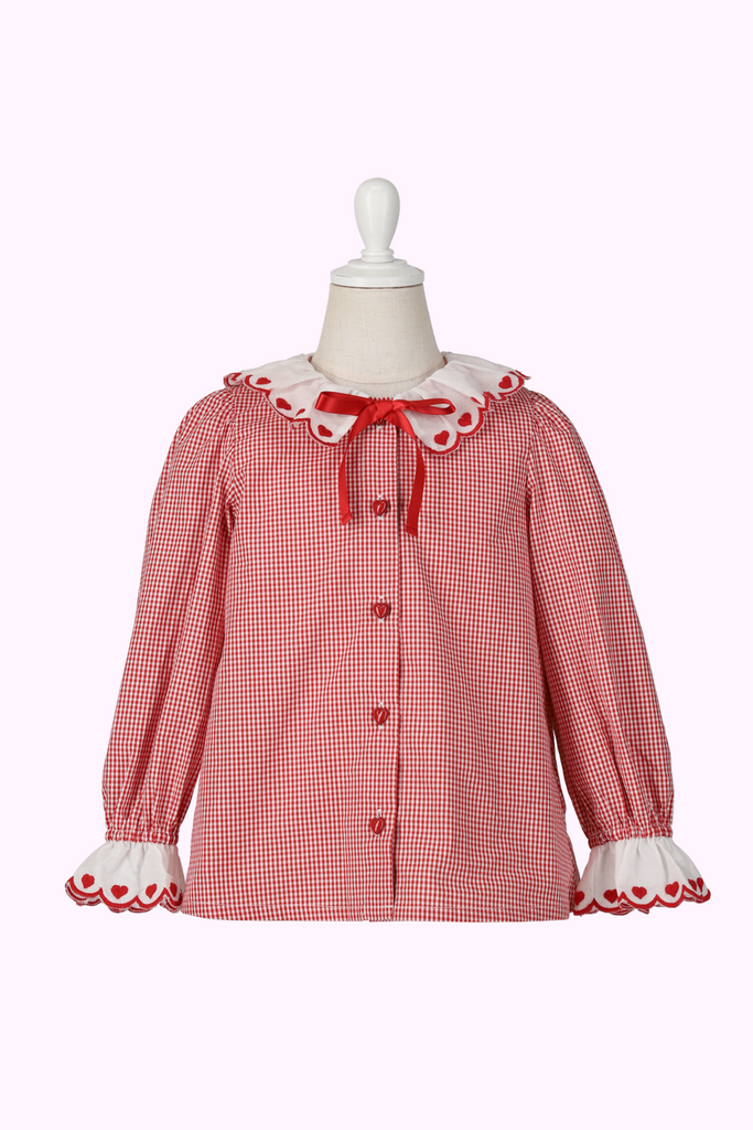 ギンガムやハートレースが効いた、主役級のブラウスです♡