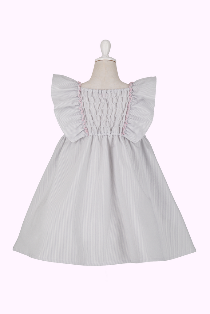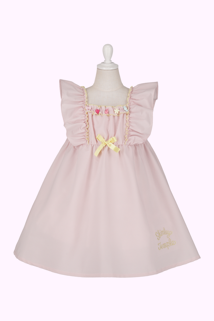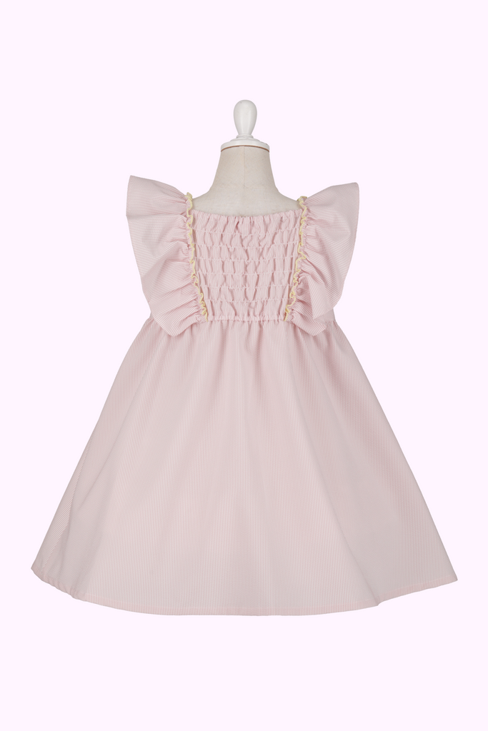 淡い色合いのストライプ生地でさらっと着やすいサンドレスです