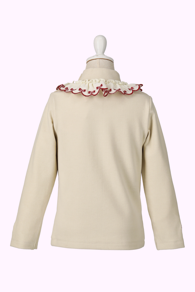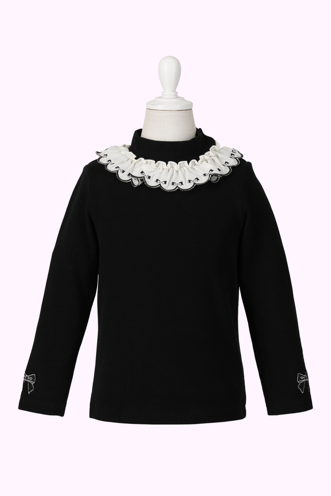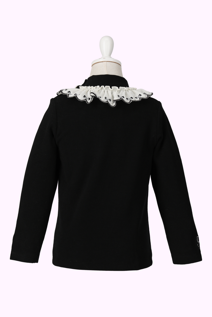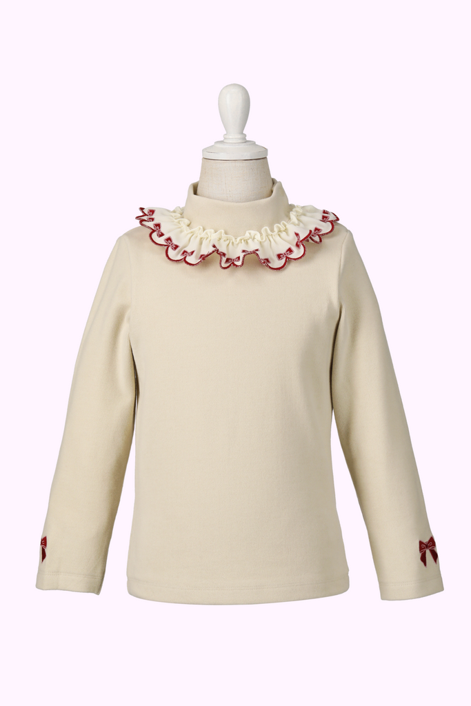 襟ぐりにはシャーリーテンプルらしいリボン刺繍が連なるスカラップフリル♡
