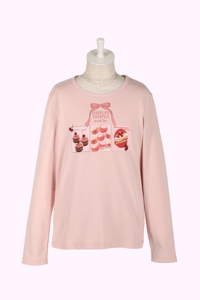 スタンダードな長袖Tシャツにケーキやマカロンの甘いプリントした